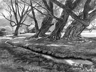 | Charcoal drawings on cold press illustration board. All drawings are matted and framed using 100% acid free archival materials.