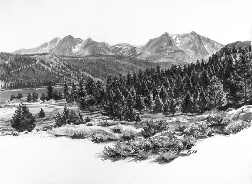 A scenic loop near Yosemite Park. I pulled the trailer all the way to the top of Tioga Pass, gears grinding, radiator hissing and irate vacationers backed up behind me for a quarter mile, only to be told that the Park campgrounds were not yet open. So I turned around and went back to the bottom, where I found this spot just before dark. I stayed here for three days. The easel is directly behind the trailer, making it an easy hike to the refrigerator.